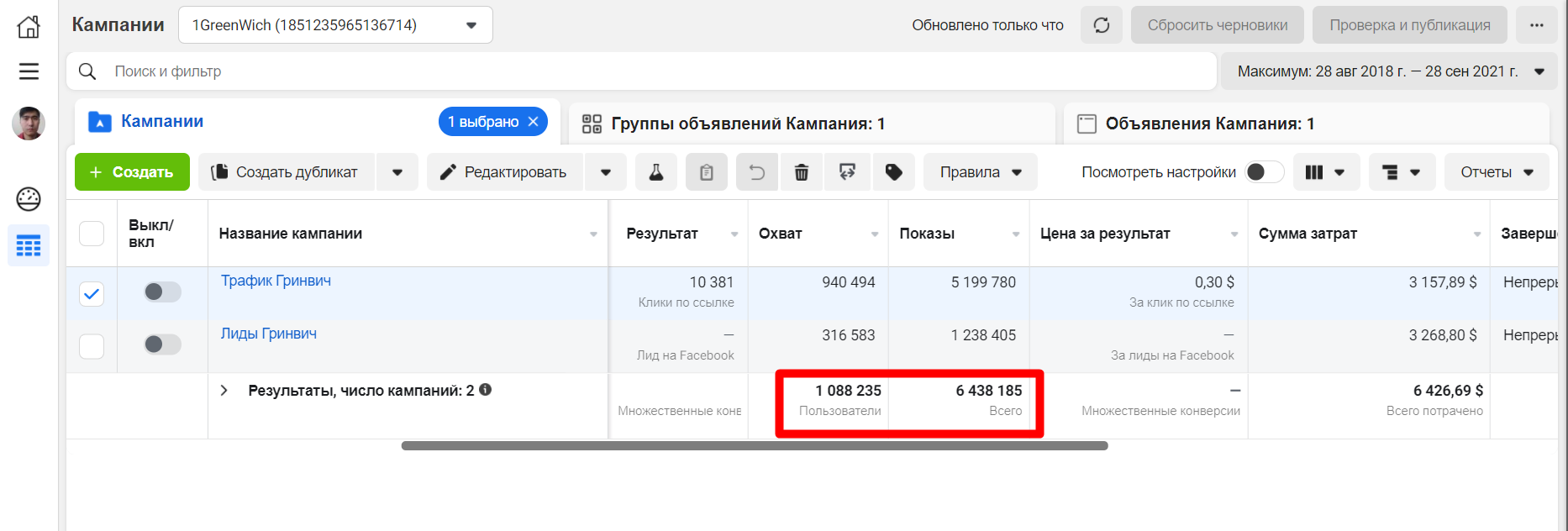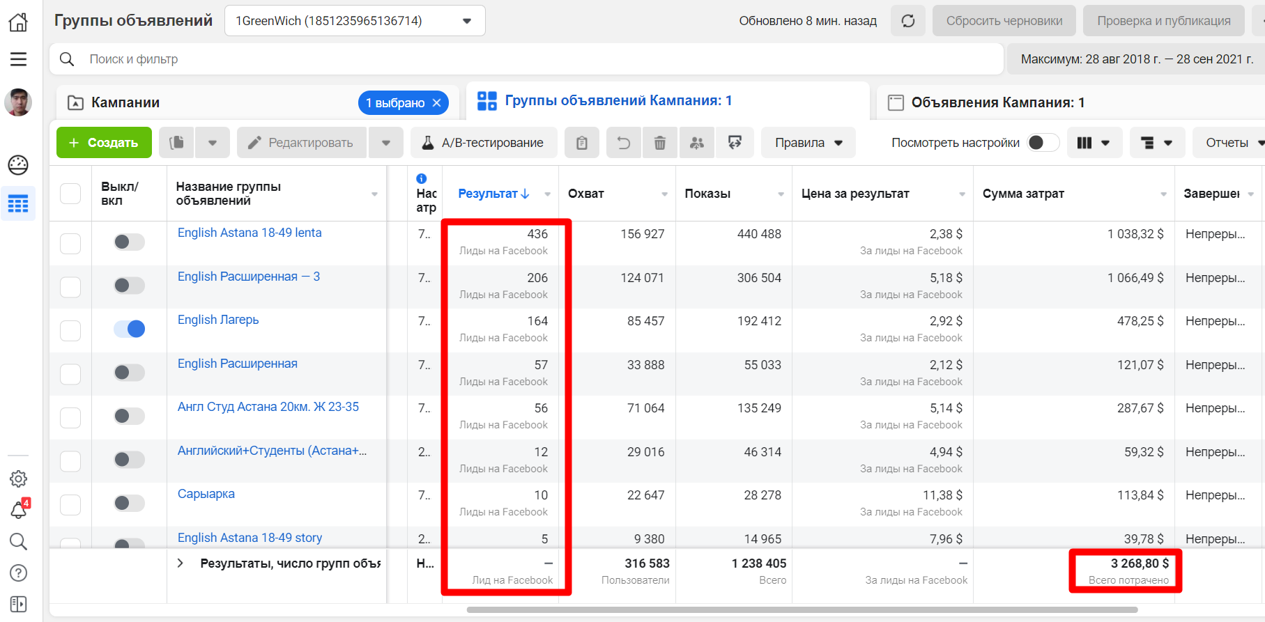 За это время запускали рекламу на профиль инстаграм, на переписку в whatsapp и на лид-формы.