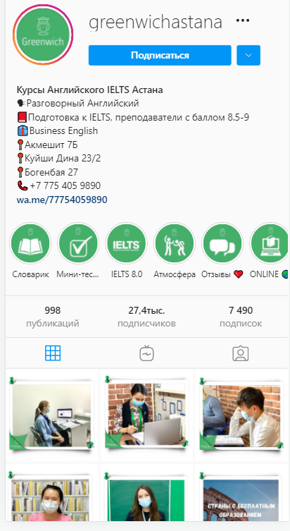 Клиент, курсы английского языка и подготовка к сдаче IELTS, c хорошей инстаграм страницей.