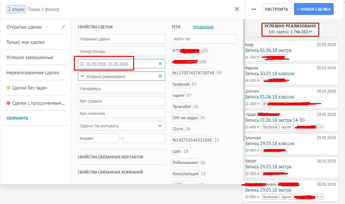 Ниже скрины из Кабинета Фейсбук и AmoCRM.