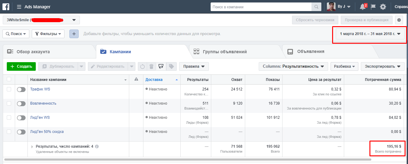 За три месяца (с 01.03.2018 по 31.05.2018) расходы на рекламу составили 195$.