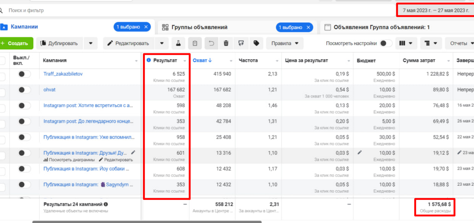 На этот раз договорились с сервисом zakazbiletov и разместили свой пиксель фейсбука на их сайте и запустили рекламу с конверсией на страницу с корзиной.